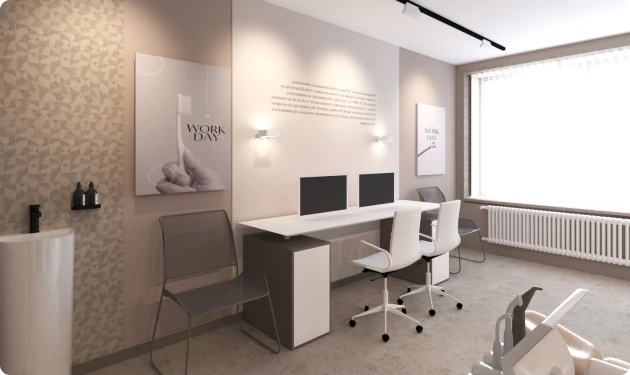 Зайдя в наш офис, вы можете почувствовать, что каждая мелочь продумана с особым трепетом и любовью. От цветовой гаммы и мягких кресел, до ароматных диффузоров и свеч. Мы используем яркие и интересные дизайнерские решения, стильную современную мебель и живые растения. Абсолютно каждая деталь продумана так, чтобы обеспечить комфортное времяпрепровождение и пробудить желание возвращаться к нам снова и снова.