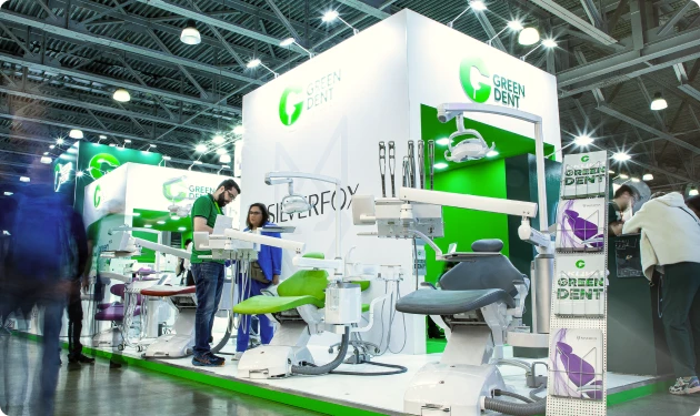 Мы принимаем участие во всех крупных стоматологических выставках: 3 раза в год в Москве (площадь нашего стенда 332 м2), а также в 8 региональных.